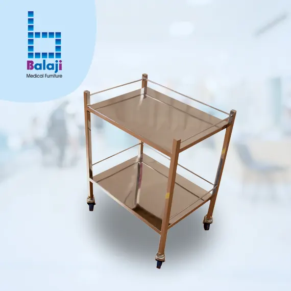 | Fittings | Mounted on 4" wheels two SS 18g shelves with Protective railings on three sides |